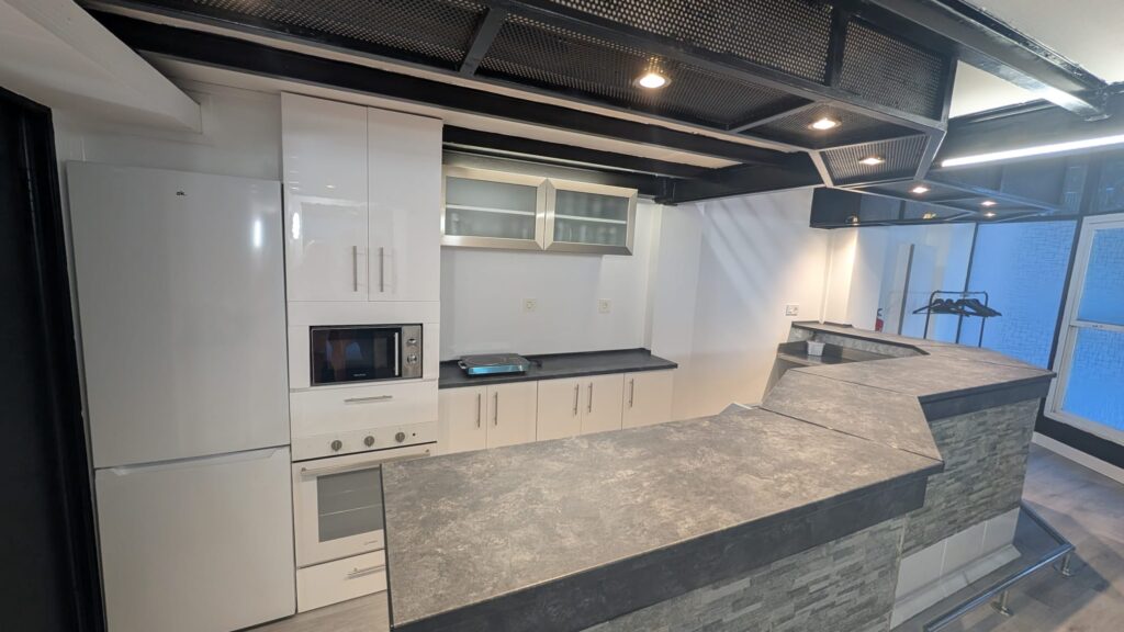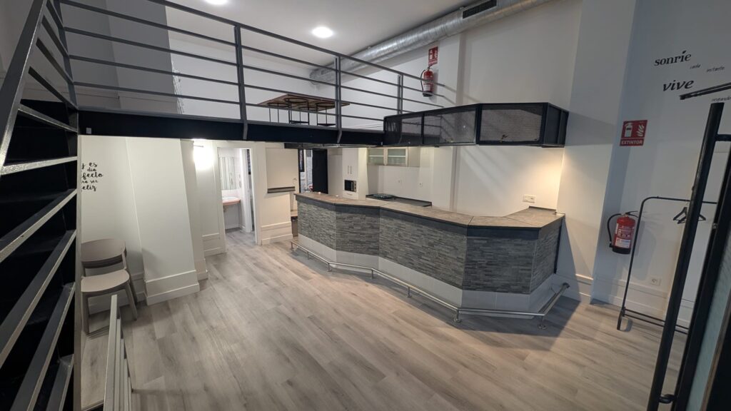 El espacio principal del local. Amplio, versátil, con una barra de bar y perfecto para bailar, colocar mesas o crear un área de música. Suele ser la sala principal donde se desarrolla el evento